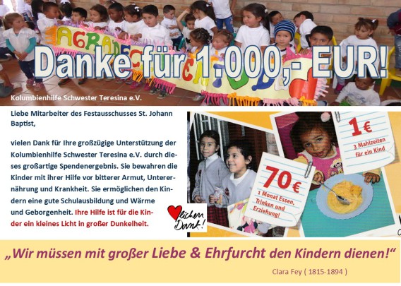 Die Kolumbienhilfe Schwester Teresina e.V. bedankt sich für 526,- EUR!